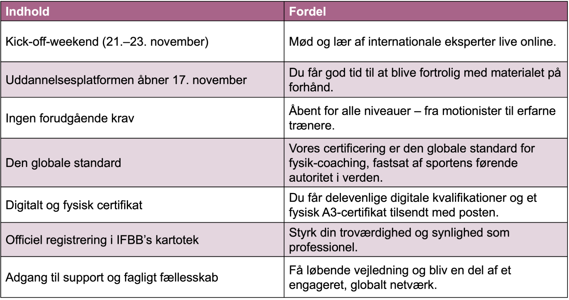 Respekteret Certificering: Få et internationalt anerkendt IFBB Personlig Træner-certifikat (svarende til EQF Niveau 4).