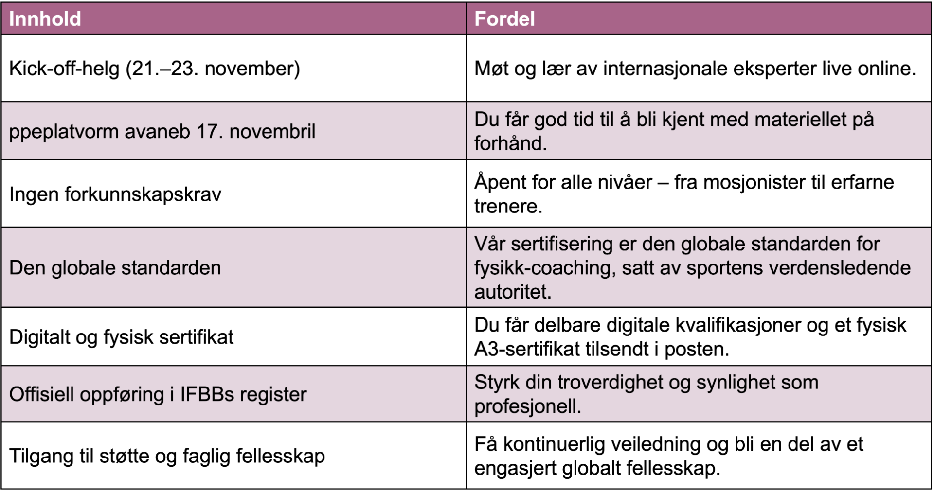 Gjør lidenskapen din til ferdigheter og bli en suksess. Bestill din plass NÅ og begynn reisen mot å bli sertifisert IFBB Personlig Trener!
